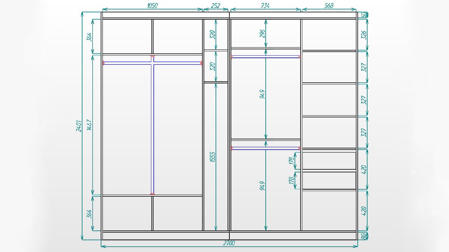 Також у шафі є можливість додатково встановити рамку портал, блок ящиків та еркер.